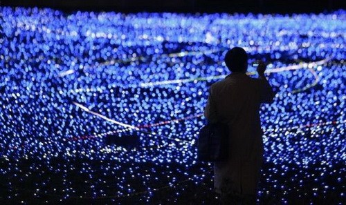 Một người đàn ông chụp hình các ngọn đèn LED màu trắng và màu xanh dương được dùng làm như vật trang trí nhân dịp Giáng Sinh tại Tokyo hồi năm 2009 - Ảnh: Reuters